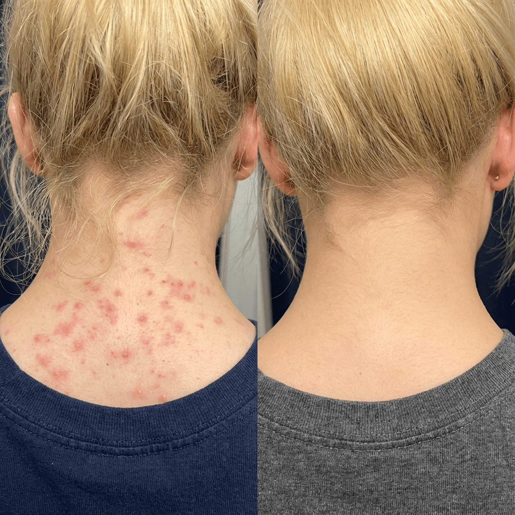 "I was so embarrassed by my upper back and neck — couldn't even wear my hair up without feeling self-conscious. Started using this about 7 weeks ago and the difference is insane. The redness went down after like a week and now my skin is almost completely clear. Didn't dry me out either. Finally feel normal again."— Ashley. F