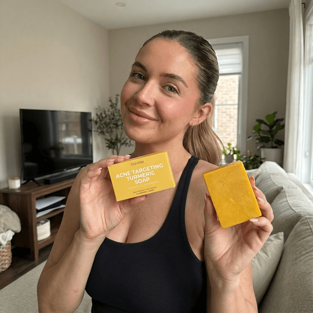 Other treatments either dry you out, cause flaking, or work for a few weeks then stop. The Cleaura Bar uses turmeric — a natural antibacterial — to kill acne-causing bacteria at the source while keeping your skin hydrated. Real clearing power without punishing your skin.