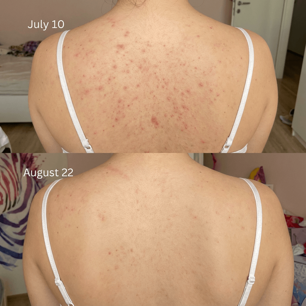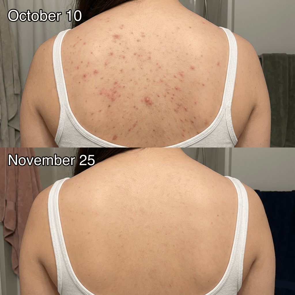 "Bought this for my wife after she'd been dealing with back breakouts for years. She didnt care to try it at first, but i convinced her. About 3 weeks in she showed me her back and I was genuinely shocked at the difference. The angry red bumps she'd had for months were just... gone. She's way more comfortable now and actually wears tank tops again. Worth it." ★★★★★