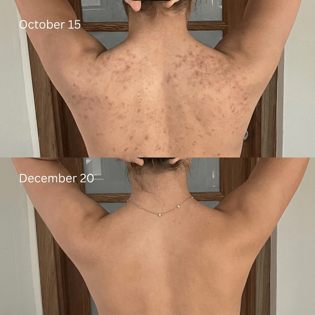 I was dealing with breakouts and dark spots on my back that just didn't match my whole vibe lol. After about 6 weeks my back is so smooth and the spots are basically gone. Finally feel confident in backless tops again. Obsessed with how simple but effective this is!